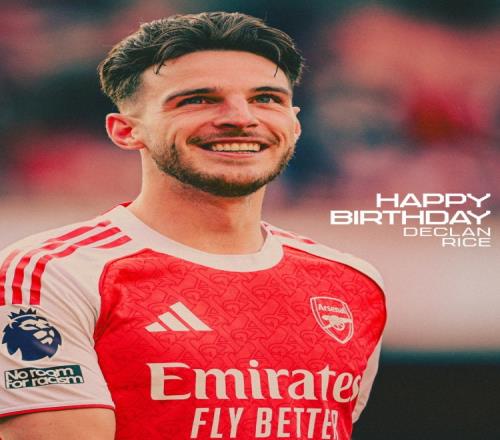 阿森纳官方社媒晒出赖斯的生日海报,配文:“生日快乐,德克兰!”